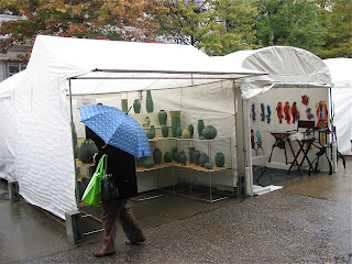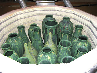 Those of you familiar with the Arts & Crafts pottery made between 1890-1910+ are familiar with the Roseville jardineres on pedestals. We thought we would attempt to make at least one. It is a difficult challenge because the two pieces are made separately and must fit together after the 15% shrinkage our pieces undergo from thrown to finish. Roseville pottery was cast and though handling plaster molds fill of liquid clay slip is tricky, they were a factory and had appropriate mechanization. Here is a large base Steve has thrown. He'll put a slab on top from which he'll make a rim for the bowl to sit on. Next he'll make the bowl.