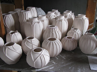 Fortunately the drought has not extended to our studio where we have been busy making pots in anticipation of selling at the shows we have signed up for so far. We have 4-6 on the calendar already and are waiting to hear the results from a few others. We start on that first weekend in June at the Kenan Center in upstate New York. Until then we are busy worker bees.